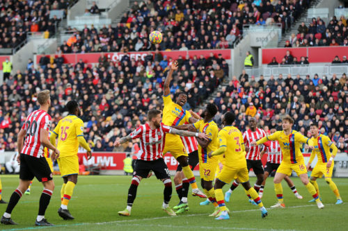 Brentford seemed to have a good case for a penalty when Palace’s Marc Guéhi jumped high to palm the ball down, only for referee Darren England to rule that Christian Nørgaard had pushed he defender in the back. VAR confirmed this, although the replay showed Nørgaard’s touch was feather-light and unlikely to disturb a butterfly.