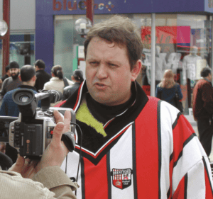 Paul Stedman being interviewed while campaigning for the ABeeC Party in 2002