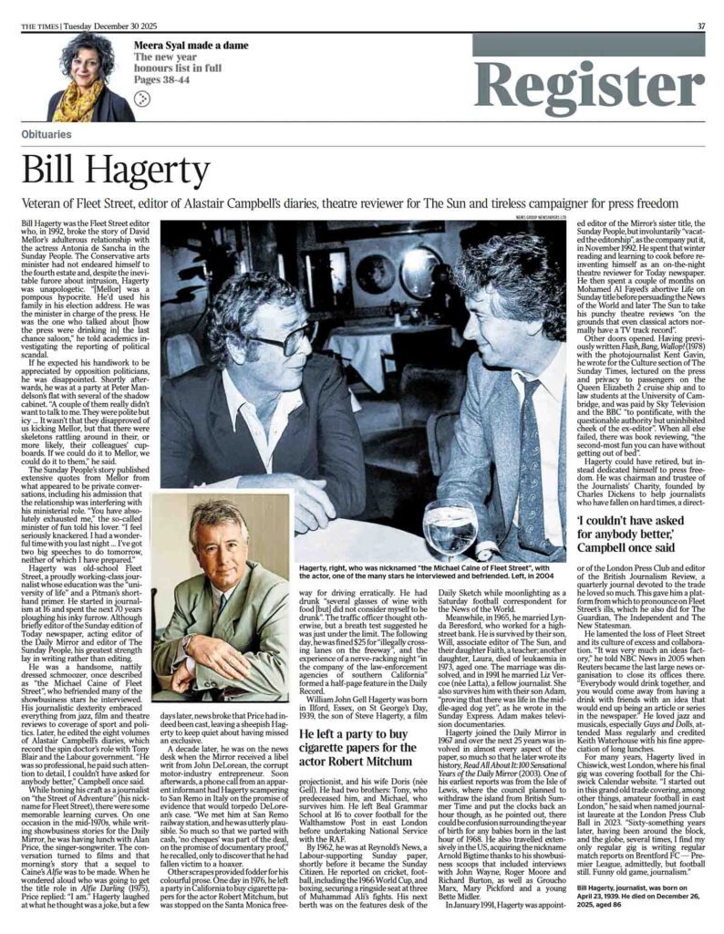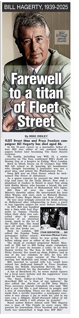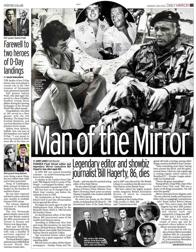 Twice an editor of Fleet Street newspapers – Sunday Today and in 1991 The People – Bill was also acting editor of the Daily Mirror.