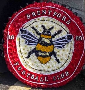 His flowers were the Brentford logo, which my sister, nephew and myself took and laid outside the old Griffin Park entrance