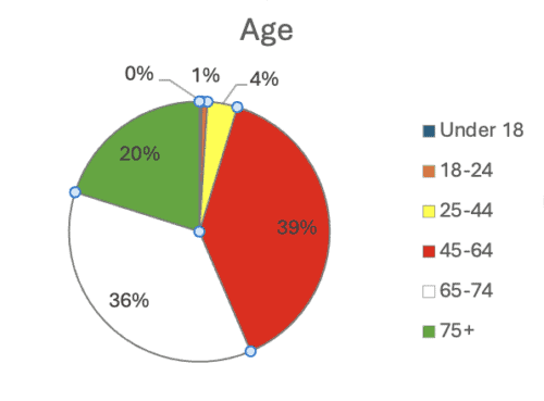 This year we asked if our members are aged over 75 and we are delighted that our most senior contingent amounts to 20%