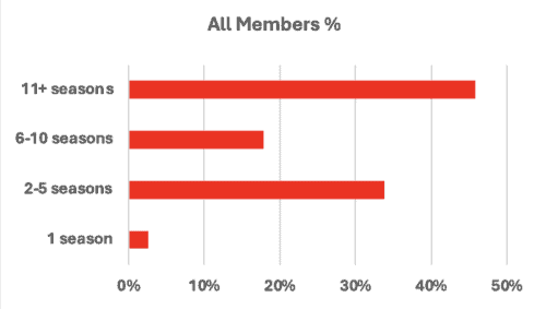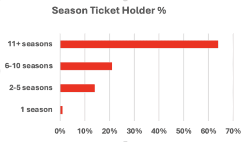 More than 80% of you, Season Ticket Holders and Members together, have been a fan for longer than 6 years and more than 60% have supported the Bees for more than 11 seasons,