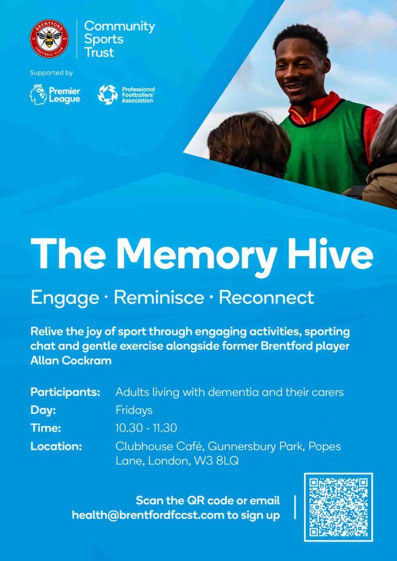 Going along can help to relive and to remember the joy of sport through some simple activities, some sporting chats about the game and the Bees of course and with some very gentle exercise alongside former Brentford player and hero, Allan Cockram, of Penguins fame.