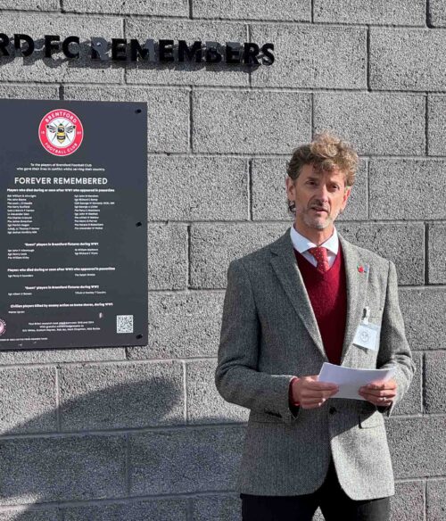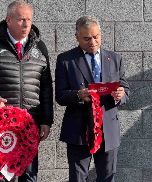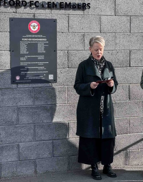 Today, on behalf of Brentford Football Club, we are honoured to join you all as we remember the Brentford players who served our country in the First and Second World Wars and lost their lives. We also remember all the people who lost their lives in service as well as civilians.